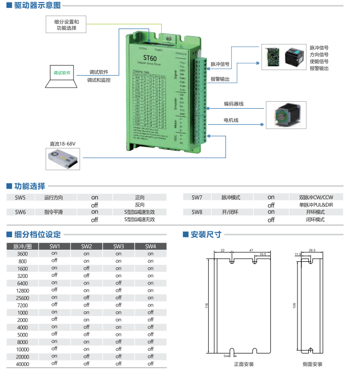 ST60匹配60以下閉環(huán)步進(jìn)電機(jī),ST42匹配42以下閉環(huán)步進(jìn)電機(jī)。