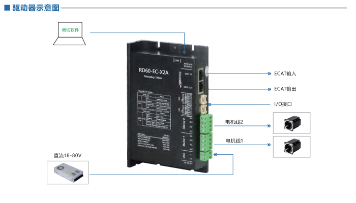EtherCAT總線開(kāi)環(huán)步進(jìn)驅(qū)動(dòng)器RD60-EC-X2A,基于CoE標(biāo)準(zhǔn)框架,符合CiA402標(biāo)準(zhǔn)。數(shù)據(jù)傳輸速率可達(dá)100Mb/s,支持多種網(wǎng)絡(luò)拓?fù)浣Y(jié)構(gòu)。